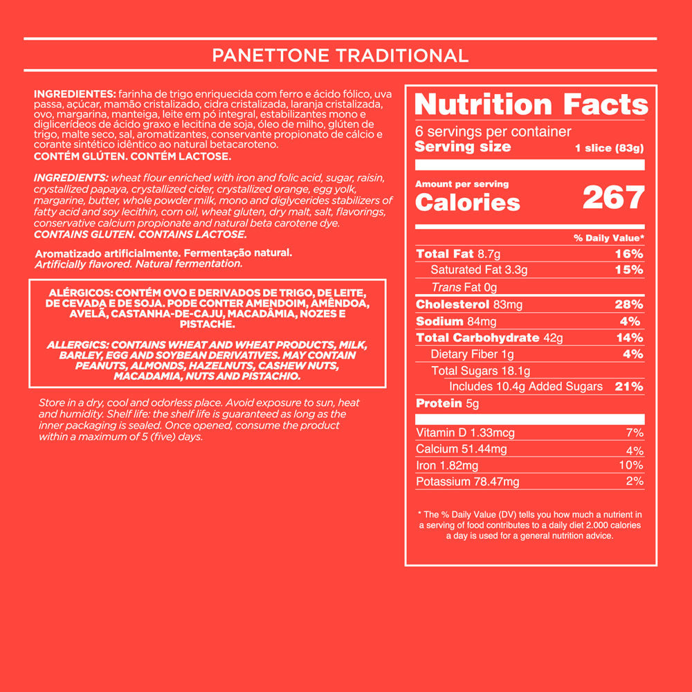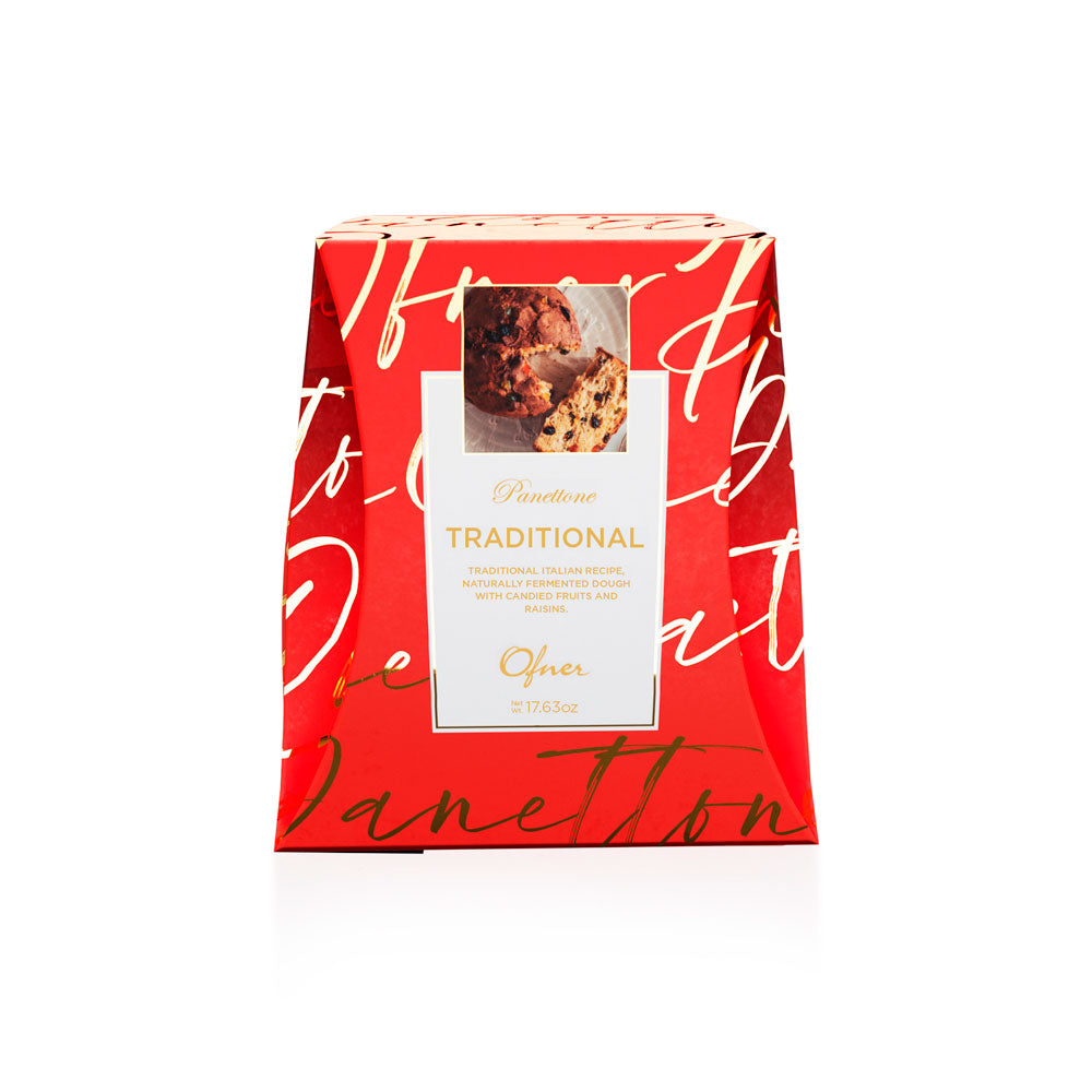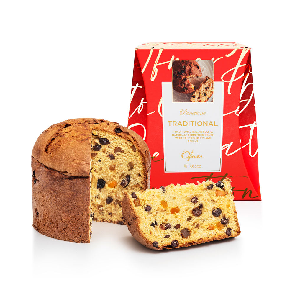 Crafted with our signature triple natural fermentation dough, this classic Panettone features candied fruits and raisins, offering a timeless flavor with a light, airy texture.