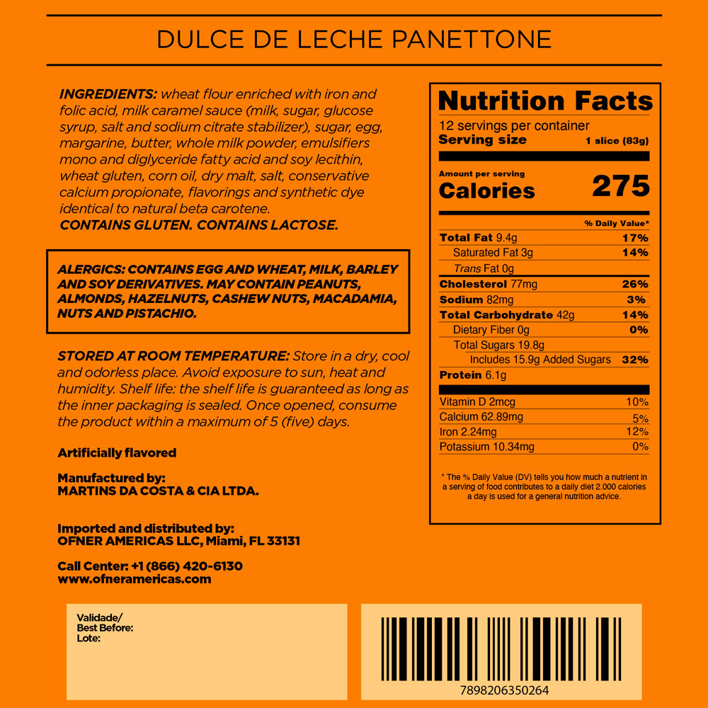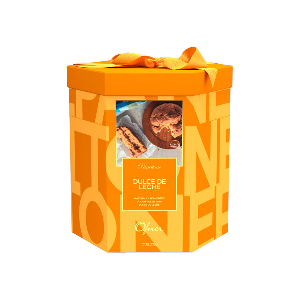 Made with a slow triple natural fermentation process, this Panettone is generously filled with rich and creamy dulce de leche for an indulgent experience.