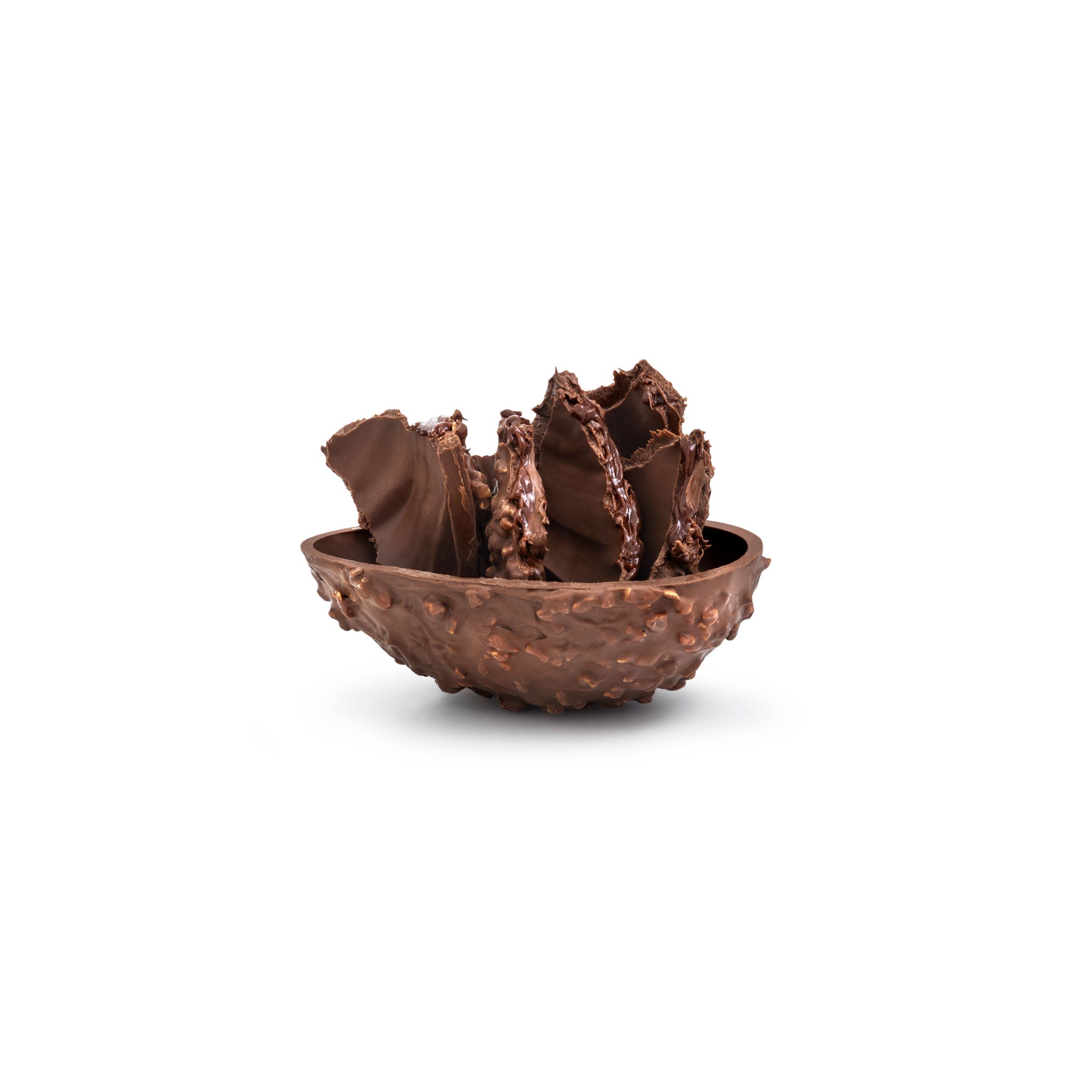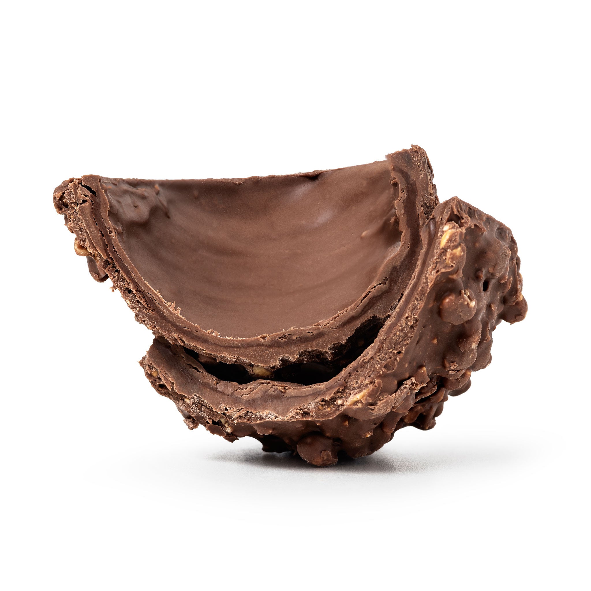Milk chocolate Easter egg with hazelnut pieces and Gianduja cream.